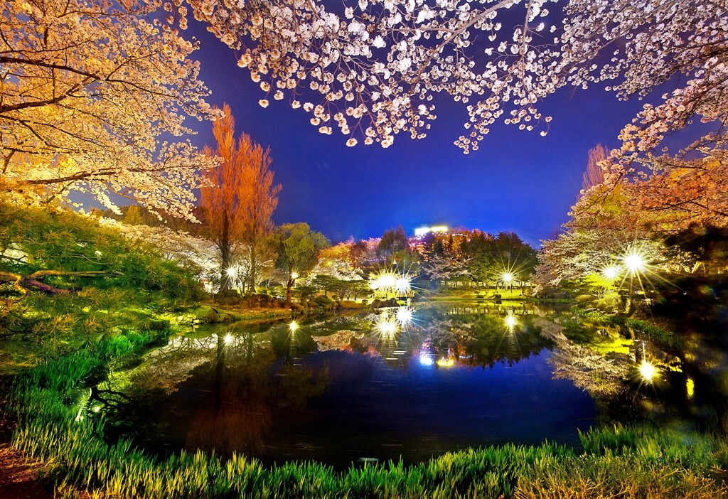 야간에는 조명과 함께 벚꽃이 또 다른 분위기를 선사합니다.