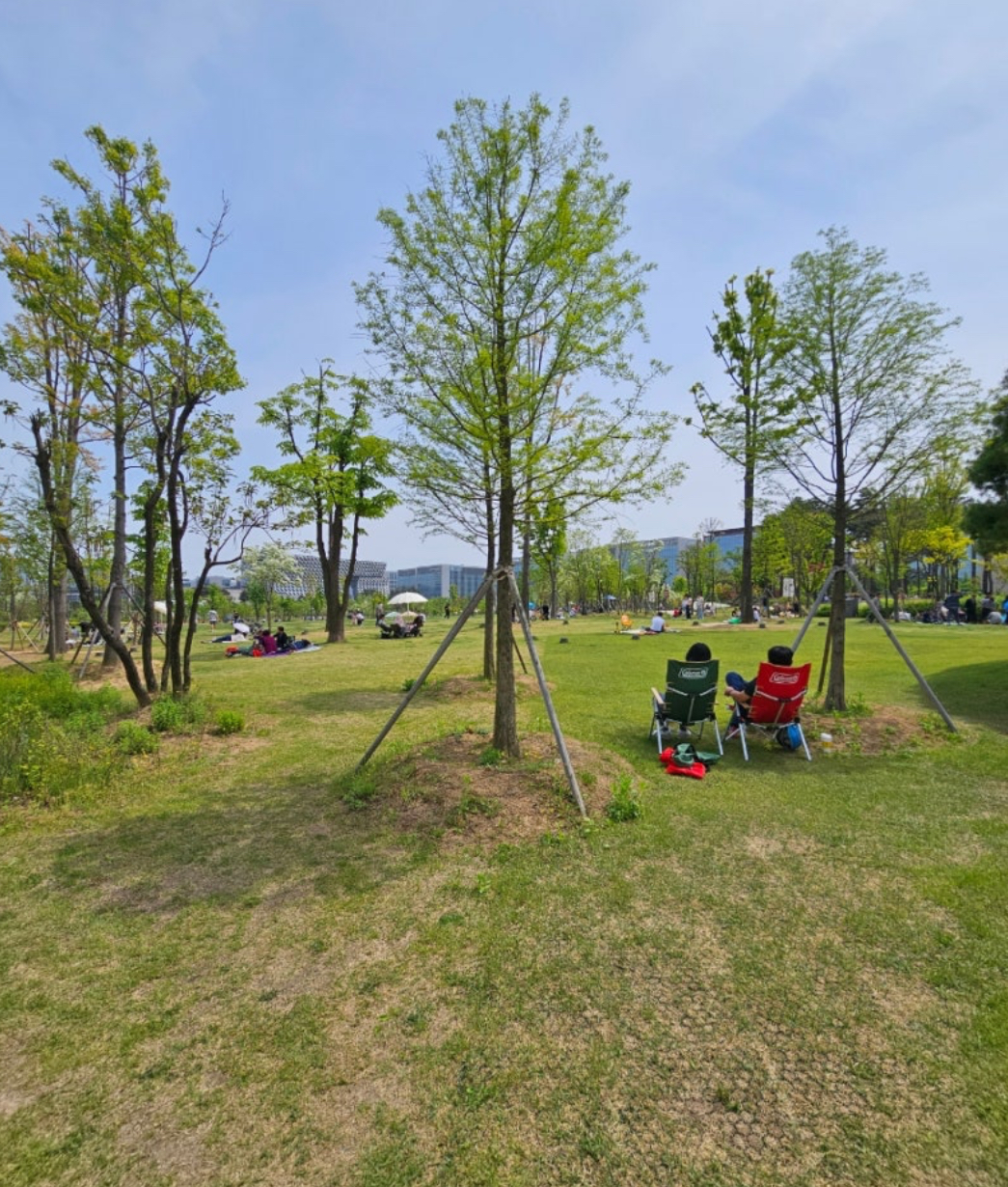 잔디광장에서는 돗자리를 펴고 잠시 쉬어가기도 좋아요.