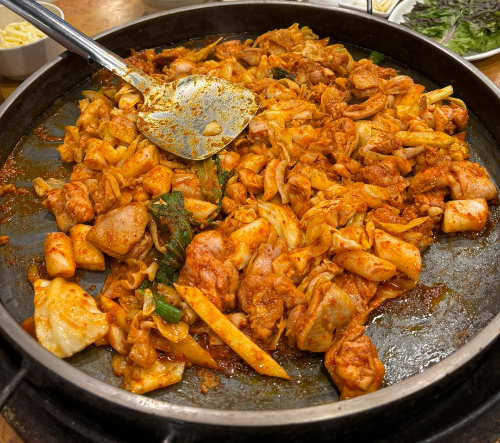 속초는 해산물로 유명하지만 닭갈비(닭갈비) 또는 매콤하게 볶은 닭고기는 지역 요리의 다양성을 반영하는 인기 요리입니다. 이웃 도시 춘천에서 시작된 닭갈비는 양념된 닭고기에 양배추, 고구마, 떡 등의 야채를 매콤하고 감칠맛 나는 소스에 볶은 것이 특징입니다. 이 요리는 일반적으로 테이블에서 핫 플레이트로 조리되므로 선호도에 따라 매운 정도를 맞춤 설정할 수 있습니다. 속초에는 도시 전역에서 치즈나 해산물과 같은 추가 재료를 포함하는 다양한 종류의 닭갈비 레스토랑을 찾을 수 있습니다. 속초버스터미널 인근의 번화한 거리와 도심 지역은 지역 주민과 방문객 모두가 즐겨찾는 닭갈비 맛집을 찾기에 좋은 장소입니다. 친구나 가족과 함께 식사하든 닭갈비는 속초의 활기찬 음식 현장을 경험하고 공유하기에 완벽한 푸짐하고 맛있는 식사를 제공합니다. 속초의 맛있는 음식을 맛보고 매콤한 닭갈비의 맛에 푹 빠져보세요. 특히 닭갈비는 철판에 볶듯이 요리가 되기 때문에, 야채와 고구마와 함께 먹으면 환상의 맛으로 기억될 것입니다. 그리고 후식으로는 K-후식인 볶음밥을 꼭 먹어야 합니다. 볶음밥은 남은 소스와 음식에 밥과 김 그리고 참기름을 넣고 볶는 것으로, 남녀노소 다 좋아하는 음식입니다. 각각의 요리는 속초의 해안 매력과 문화 유산의 독특한 맛을 제공하여 귀하의 방문이 기억에 남을 뿐만 아니라 맛있는 것을 보장합니다.