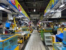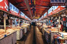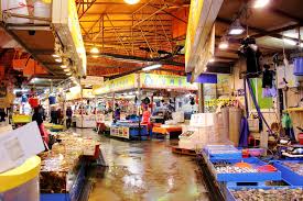 서해안 제철 해산물이 모여 있는 활기찬 시장이에요.