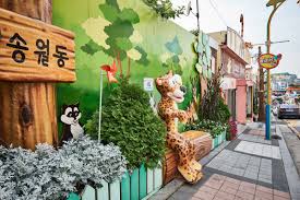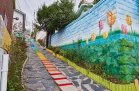 알록달록한 동화 속 캐릭터들이 그려진 골목길이 가득한 감성 마을이에요.
