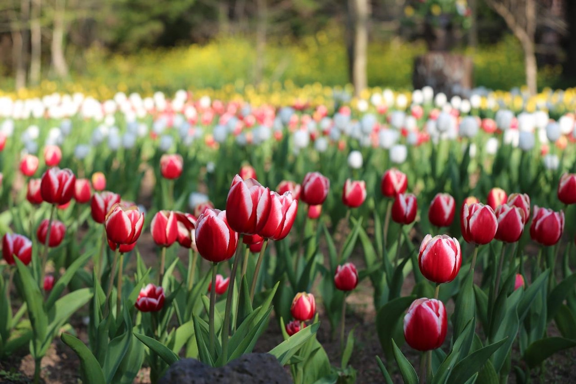 유채꽃길을 따라 걷고, 바다 옆 벚꽃을 지나 튤립 정원에서 봄을 마무리해보세요.