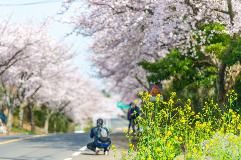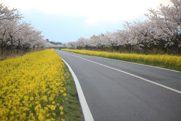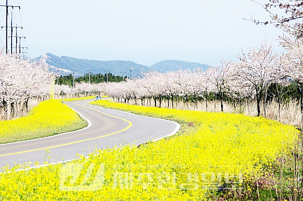 유채꽃이 도로를 뒤덮고, 벚꽃이 마을을 채웁니다.