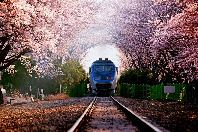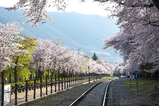 경화역은 폐역이지만 철길과 벚꽃이 어우러진 명소입니다.